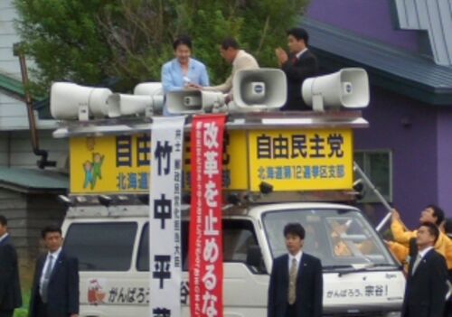 遠いところわざわざよくお越しくださいました。 12時50分くらいから20分ほど郵政民営化の意義と武部さんの応援の演説をして、またどこかへ去ってゆきました。 演説の趣旨は「武部さんは偉い!それを選んだ皆さんも偉い!郵政公社で行っている、郵便、保険、…